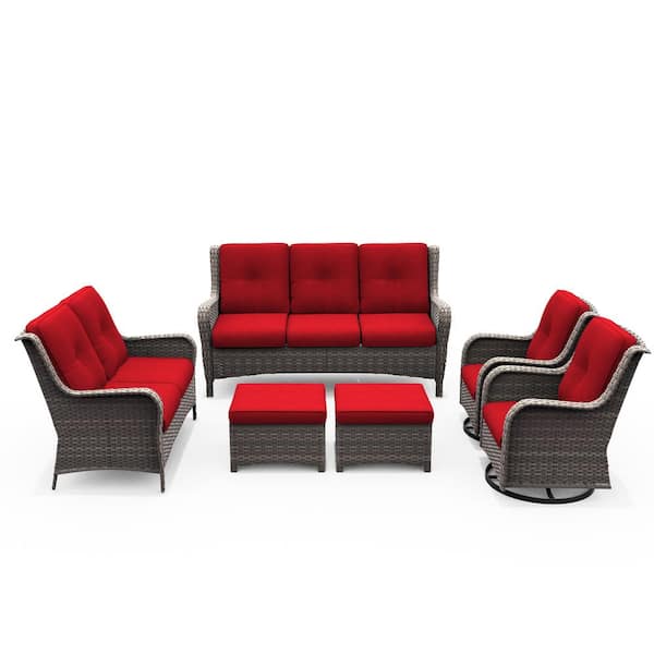Patio Furniture Set 6-Piece Wicker Outdoor Patio Conversation Set with Red Cushions