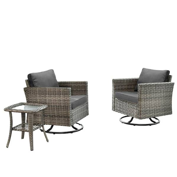 Megon Holly Gray 3-Piece Wicker Patio Conversation Seating Sofa Set with Black Cushions and Swivel Rocking Chairs