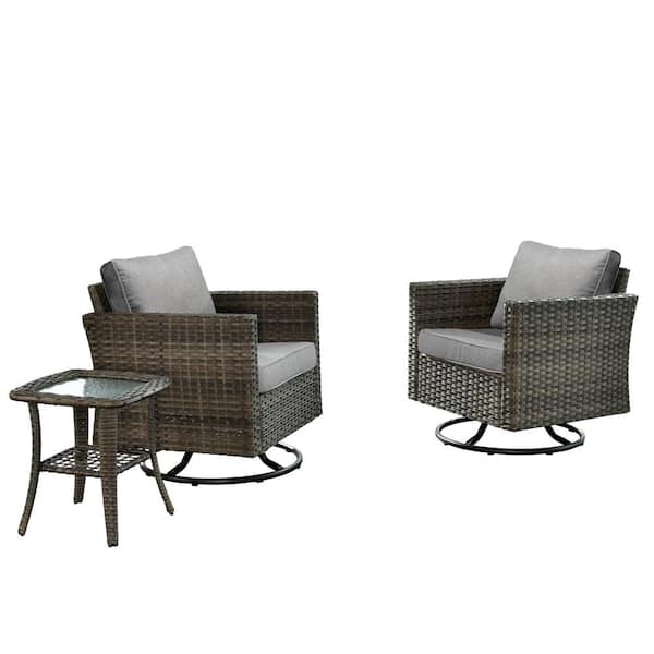 Megon Holly Gray 3-Piece Wicker Patio Conversation Seating Sofa Set with Dark Gray Cushions and Swivel Rocking Chairs