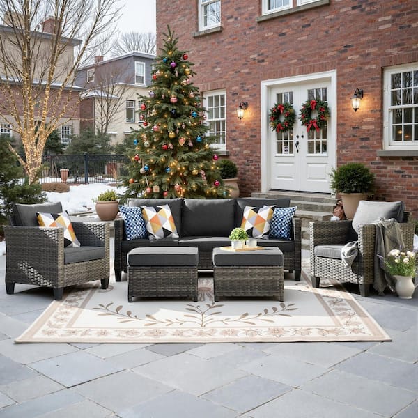 Megon Holly Gray 5-Piece Wicker Outdoor Patio Conversation Seating Sofa Set with Black Cushions