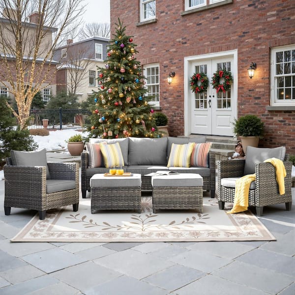 Megon Holly Gray 5-Piece Wicker Outdoor Patio Conversation Seating Sofa Set with Dark Gray Cushions