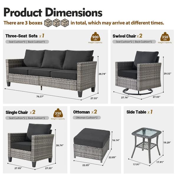 Megon Holly Gray 8-Piece Wicker Patio Conversation Seating Sofa Set with Black Cushions and Swivel Rocking Chairs