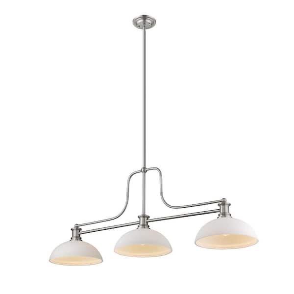 Melange 3-Light Brushed Nickel Billiard Light with Matte Opal Glass Shade Island or with No Bulbs Included