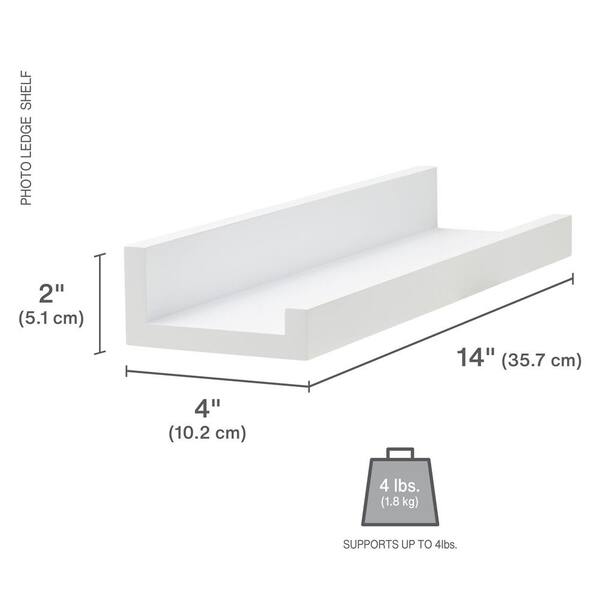 4-in W x 20-in L Set of 2 MDF Photo Ledges White, 14 Inch