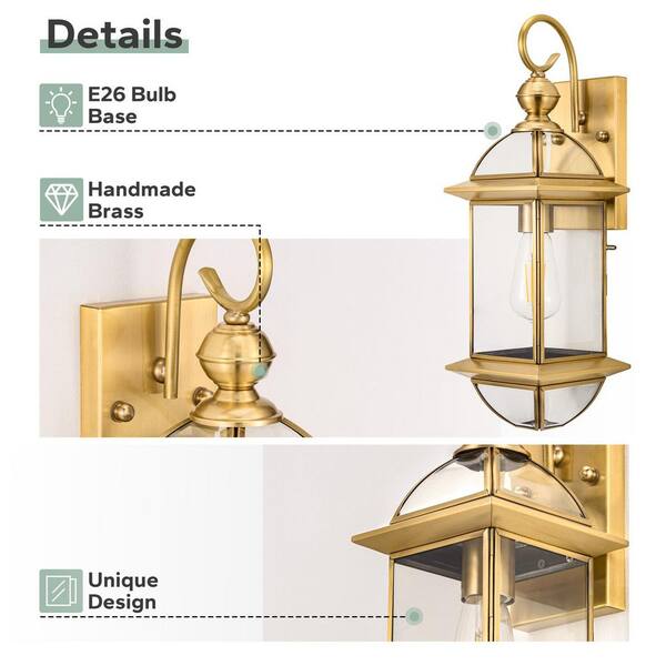 1-Light 18 in. Gold Brass Outdoor Hardwired Wall Lantern Sconce with No Bulbs Included