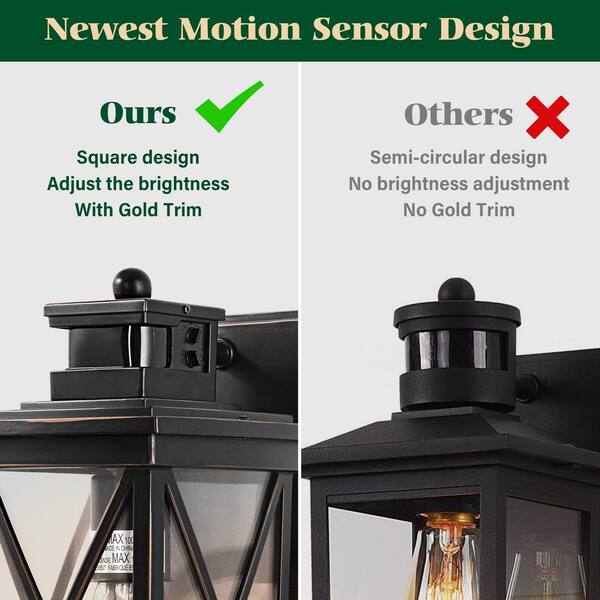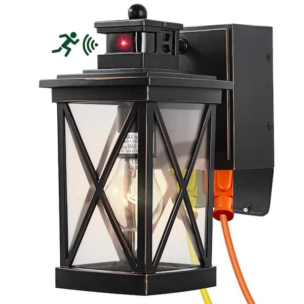 Black 1-Light w/GFCI Outlet PIR Motion Sensing Dusk to Dawn Outdoor Hardwired Exterior Wall Light Lantern Sconce