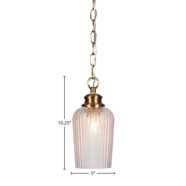 Memphis 60-Watt 1-Light New Age Brass Shaded Mini Pendant Light with Glass Shade
