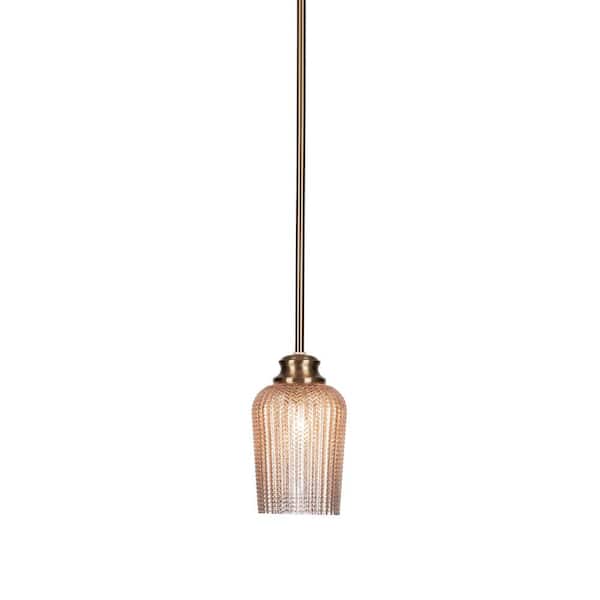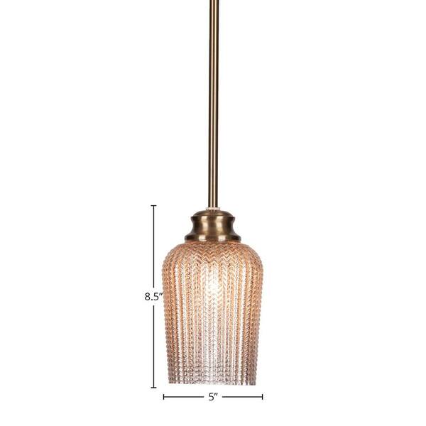 Memphis 60-Watt 1-Light New Age Brass Shaded Pendant Light with 5 in. Silver Textured Glass Shade, No Bulb Included