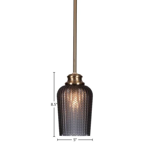 Memphis 60-Watt 1-Light New Age Brass Shaded Pendant Light with 5 in. Smoke Textured Glass Shade, No Bulb Included