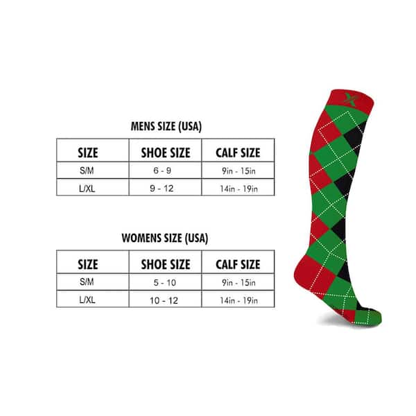 Men's Size 6-9 Christmas Themed Knee High Compression Socks (6-Pack)