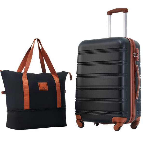 2-Piece Black and Brown ABS Hardshell 24 in. Spinner Luggage Set with Travel Bag, TSA Lock, 3-Step Telescoping Handle