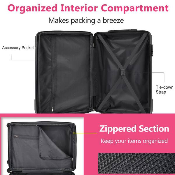 3 Bags 3-Piece Rose Red Expandable ABS Hardshell Spinner Luggage Set with TSA Lock, Reinforced Corner