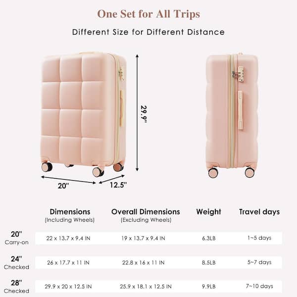 4-Piece Pink Expandable ABS Hardshell Spinner 20 in., 24 in., 28 in., Luggage Travel Bag, USB Port, Cup Holder, Hooks