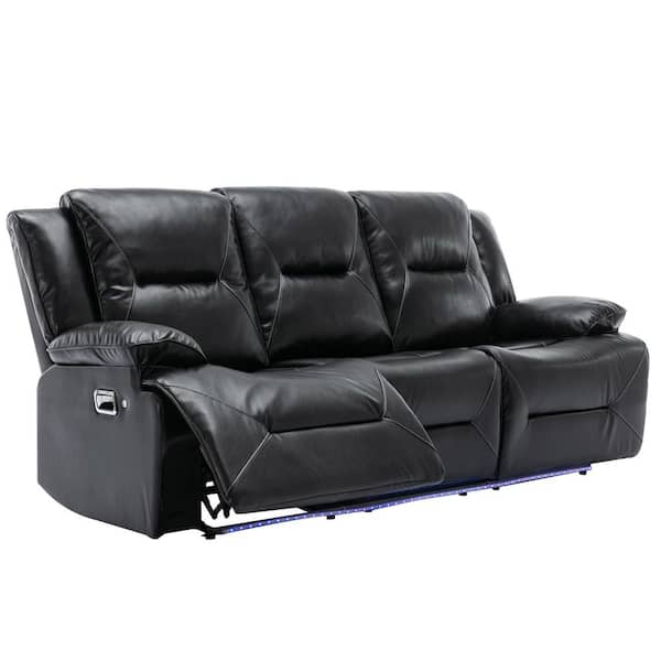 82.2 in. W Square Arm Faux Leather 3 Seater Home Theater Manual Rectangle Reclining Sofa in. Black with Cup Holders