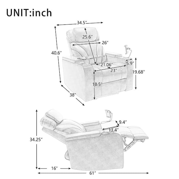 Light Brown PU Home Theater Power Recliner with Storage USB Charging Port Stereo Tray Table and Phone Holder