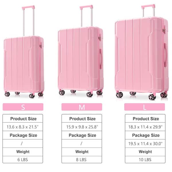 Lightweight 3-Piece Soft Pink ABS Hardshell Spinner Luggage Set with TSA Lock and Reinforced Metal Corner