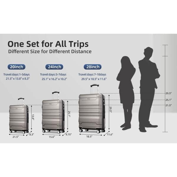 Navy Lightweight 3-Piece Expandable ABS Hardshell Spinner Luggage Set with TSA Lock