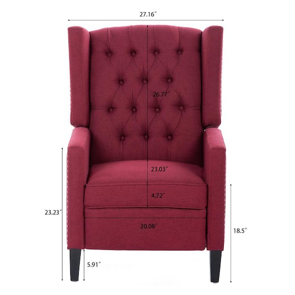 Wine Red Fabric 27.16 in. W Tufted Wingback Manual Recliner with Nailheads Arm