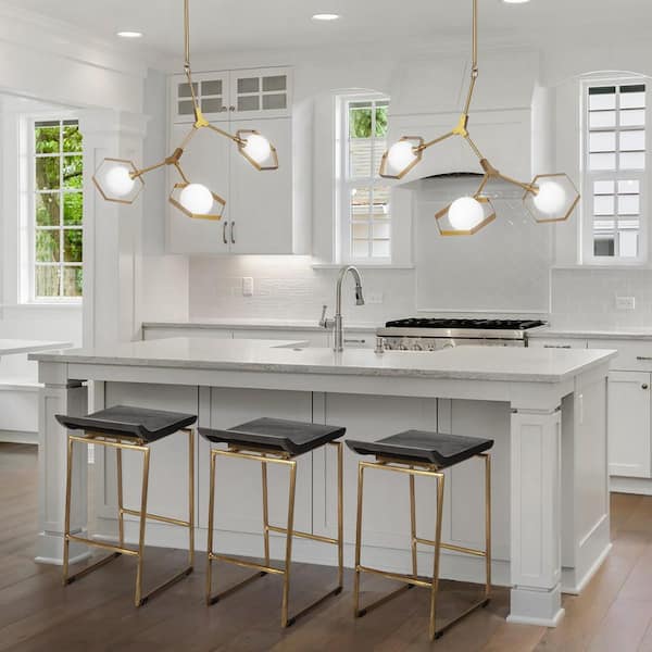 Givens 30.25 in. Seat Height Brown Wood Seat Gold Metal Base Stool