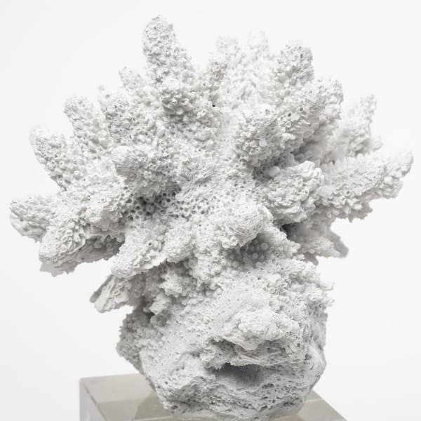 Isla (Large) 10.4 in. H White Replica Resin Coral On Clear White Glass