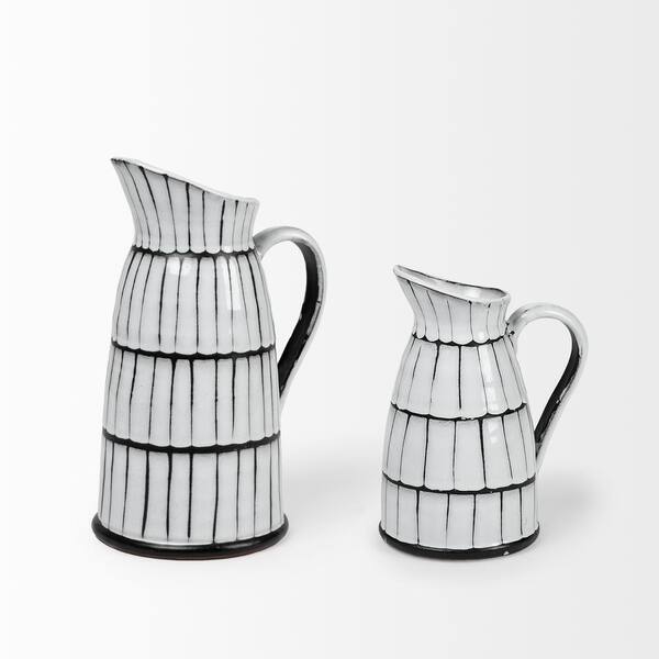 Lome White and Black Round Ceramic 6.9 in. Decorative Jar Pack Size: 1