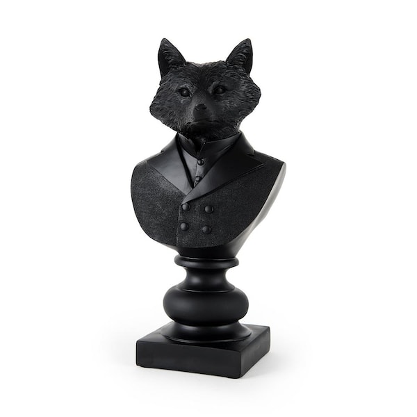 Murray 6.0 L x 4.5 W x 13.0 H Black Painted Resin Fox in a Suit Bust