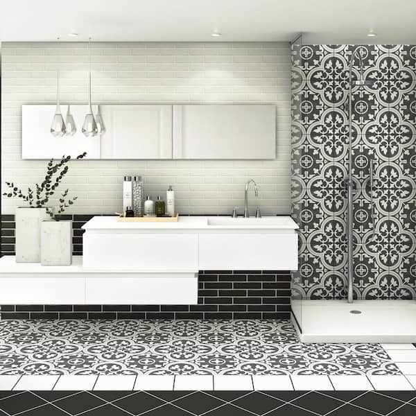 Black and gray square porcelain floor and wall tile