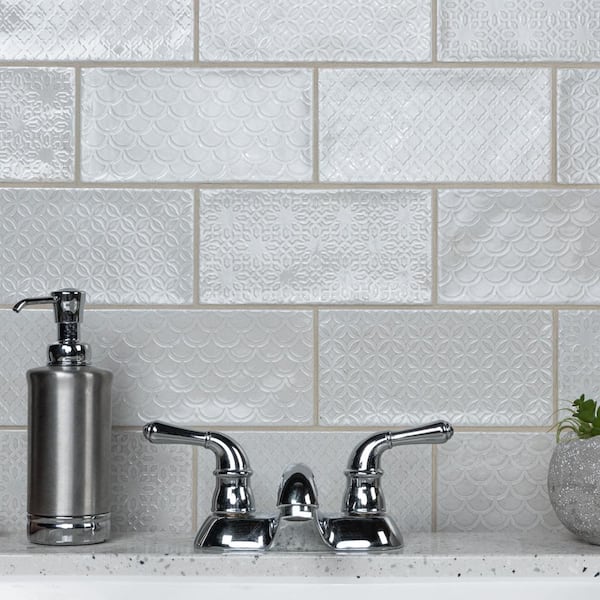Camden Decor Antique Bianco 4 in. x 8 in. Ceramic Wall Take Home Tile Sample