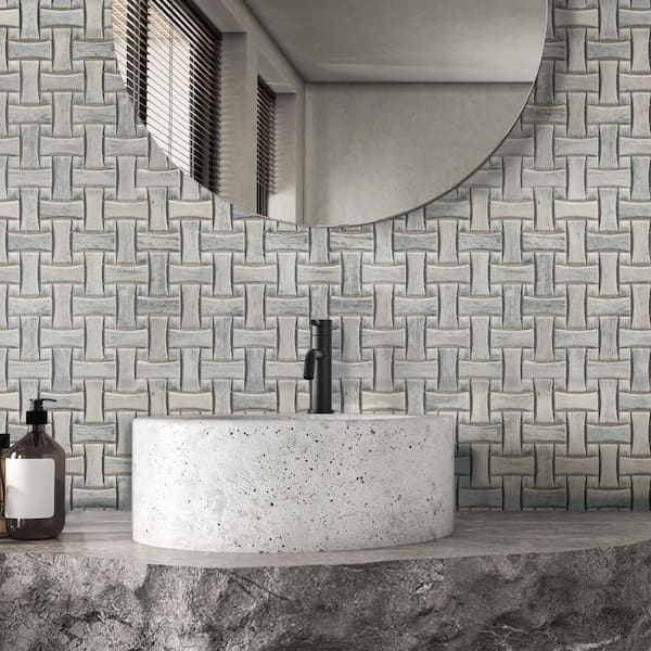 Cassis Dog Bone Basketweave White with White Dot 10 in. x 10 in. Porcelain Floor and Wall Mosaic Tile (7.1 sq. ft./Case)