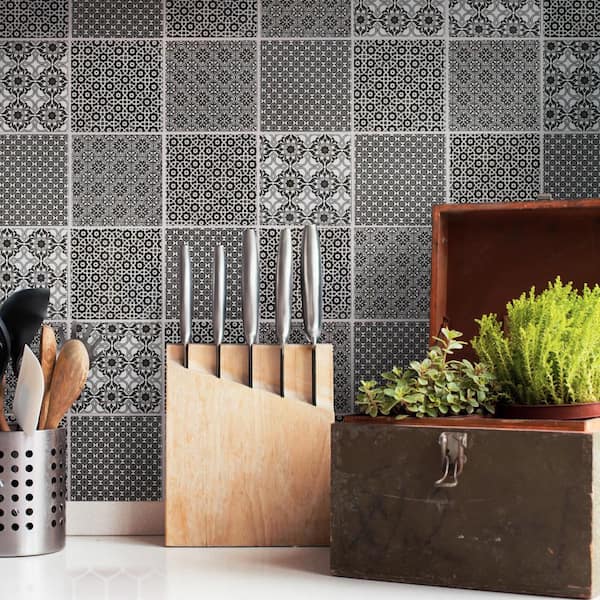 Classico 4 in. Square Black 4 in. x 4 in. Porcelain Mosaic Take Home Tile Sample
