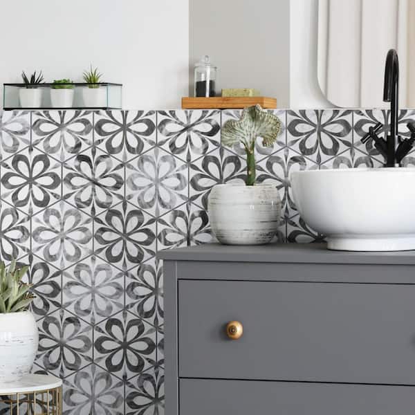Classico Bardiglio Hex Daisy 7 in. x 8 in. Porcelain Floor and Wall Take Home Tile Sample