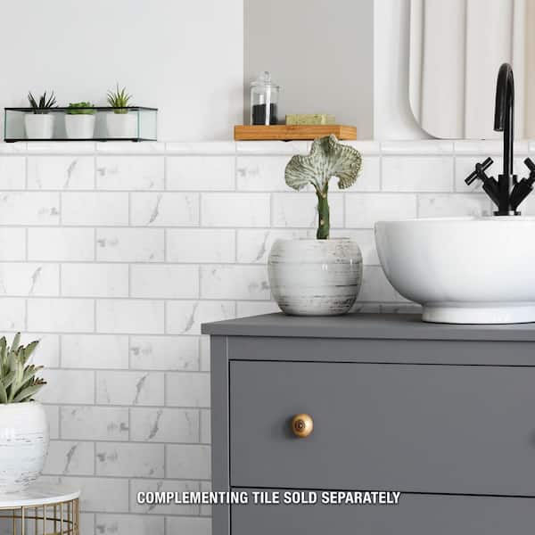 Classico Carrara Glossy Pencil Bullnose 1-1/4 in. x 6 in. Glossy Ceramic Wall Tile Trim