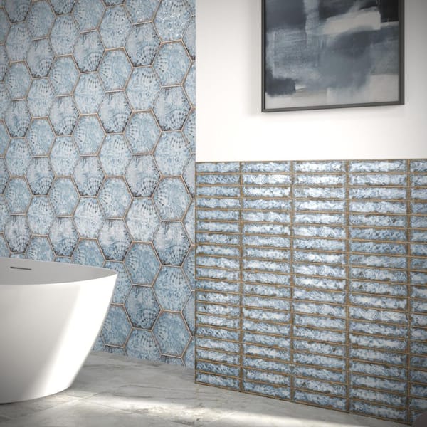 Gaudi React Brick Marina 2-3/8 in. x 9-3/8 in. Porcelain Floor and Wall Take Home Tile Sample