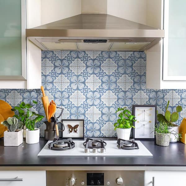 Harmonia Floral Lattice Blue 4 in. x 13 in. Ceramic Floor and Wall Take Home Tile Sample