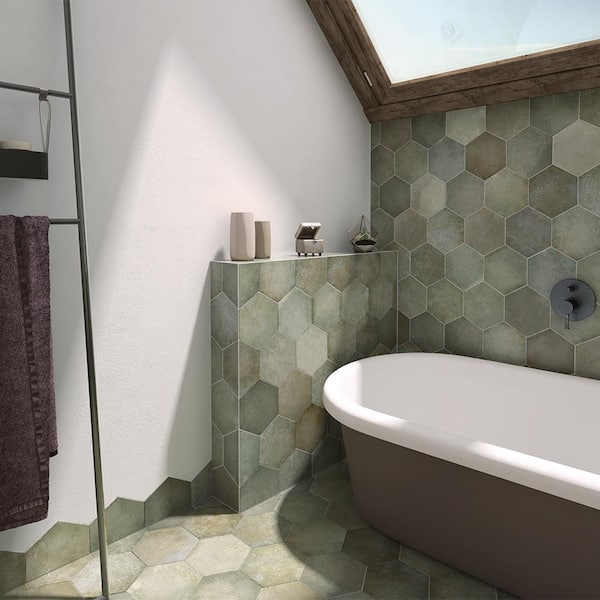 Heritage Hex Jungle 7 in. x 8 in. Porcelain Floor and Wall Take Home Tile Sample