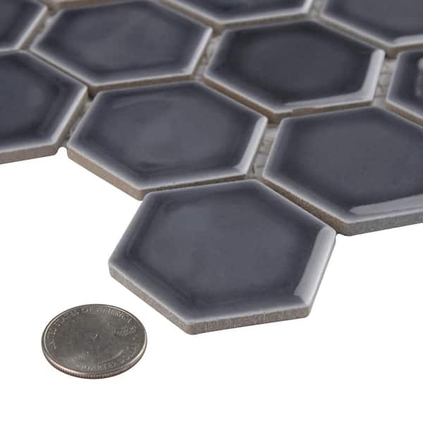 Hudson Due 2" Hex Imperial Grey 10-7/8 in. x 12-5/8 in. Porcelain Mosaic Tile (9.7 sq. ft./Case)