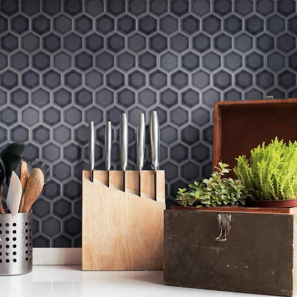 Hudson Due 2" Hex Storm Grey 6 in. x 6 in. Porcelain Mosaic Take Home Tile Sample