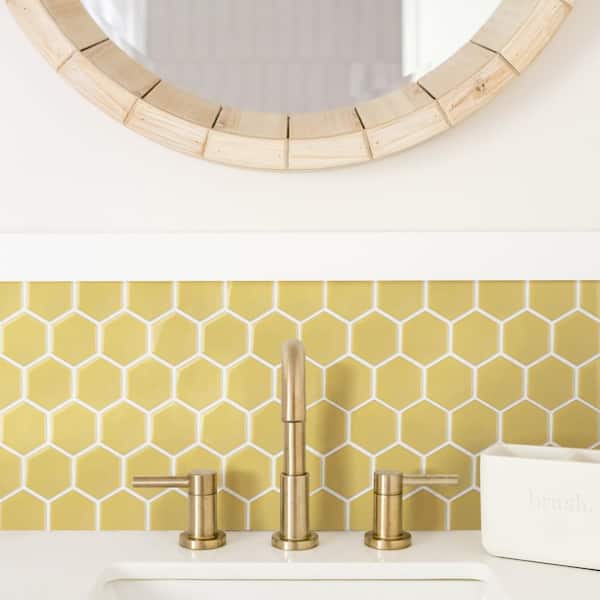 Hudson Due 2" Hex Vintage Yellow 6 in. x 6 in. Porcelain Mosaic Take Home Tile Sample