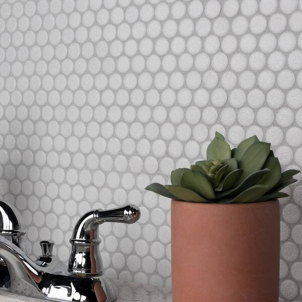 Hudson Penny Round Crystalline White 6 in. x 6 in. Porcelain Mosaic Take Home Tile Sample