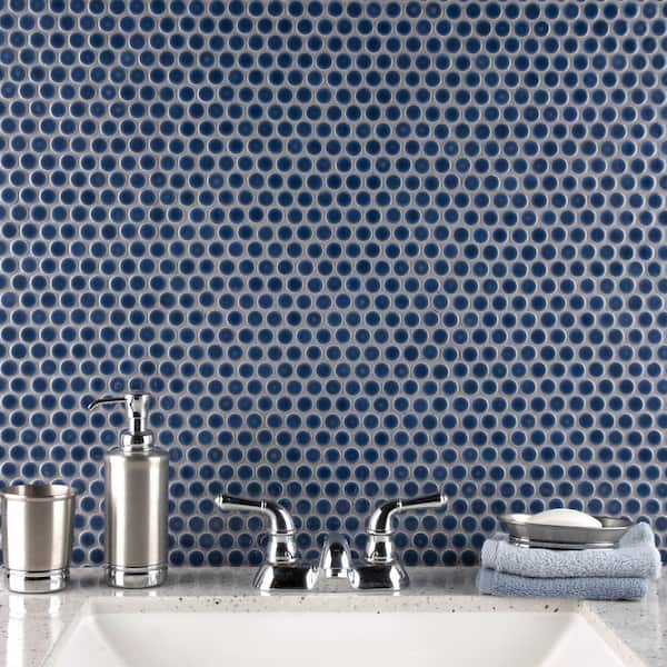 Hudson Penny Round Denim Blue 6 in. x 6 in. Porcelain Mosaic Take Home Tile Sample
