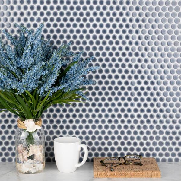 Hudson Penny Round Imperial Grey 6 in. x 6 in. Porcelain Mosaic Take Home Tile Sample