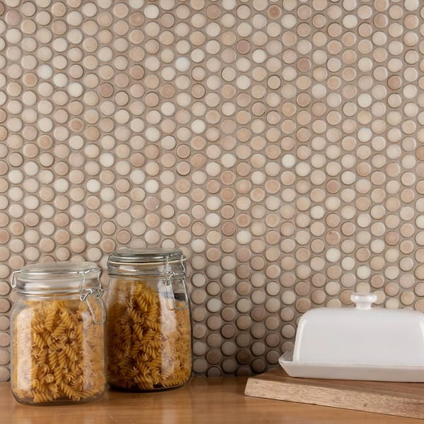 Hudson Penny Round Truffle 6 in. x 6 in. Porcelain Mosaic Take Home Tile Sample
