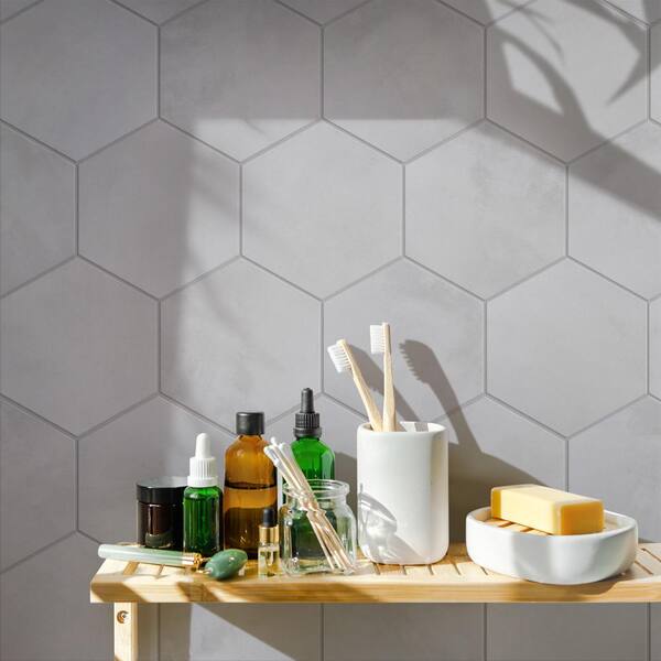 Industrial Hex White 8-1/2 in. x 9-7/8 in. Porcelain Floor and Wall Take Home Tile Sample
