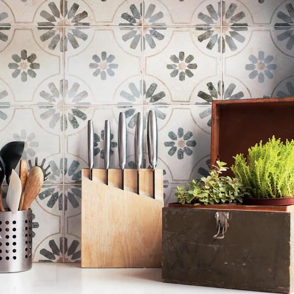 Kings Blume Blue 9 in. x 9 in. Ceramic Floor and Wall Take Home Tile Sample