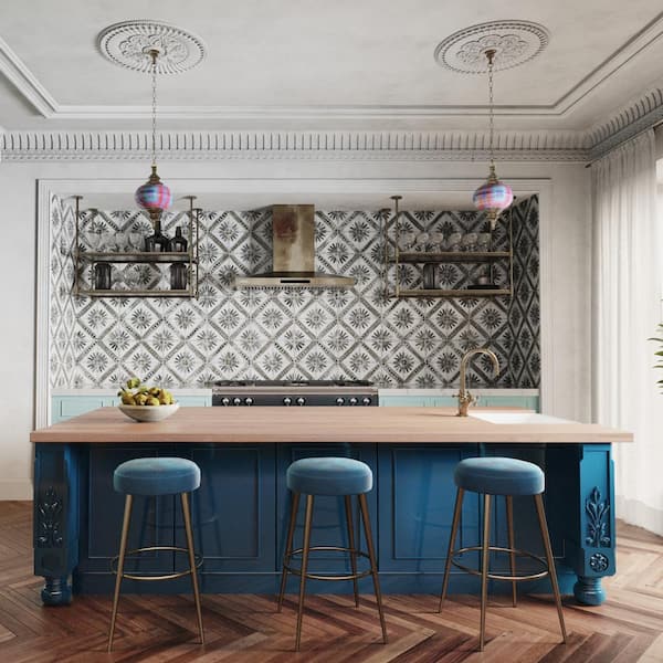 Kings Marrakech Charcoal Grey 8-3/4 in. x 8-3/4 in. Ceramic Floor and Wall Take Home Tile Sample