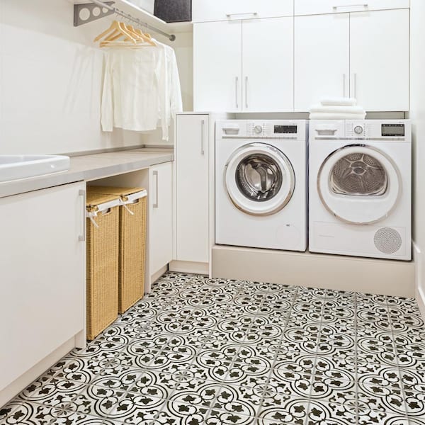 Kings Ornate Nero 8 in. x 8 in. Ceramic Floor and Wall Take Home Tile Sample