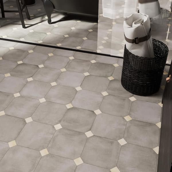 Laverton Octagon Grafito with Taco Beige 8 in. x 8 in. Porcelain Floor and Wall Tile (11.25 sq. ft./Case)