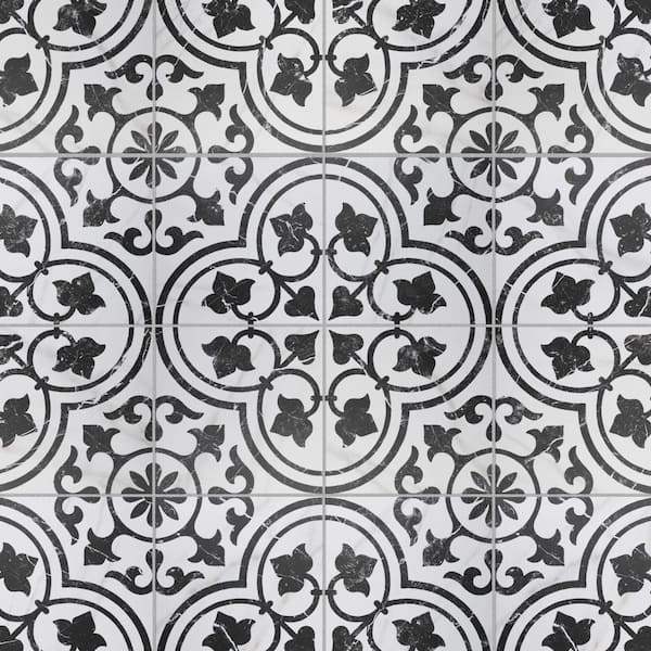 Merzoni Ornate Marquina 17-7/8 in. x 17-7/8 in. Porcelain Floor and Wall Tile (11.25 sq. ft./Case)