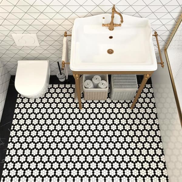 Metro 1 in. Hex Matte White with Black Honeycomb 6 in. x 6 in. Porcelain Mosaic Take Home Tile Sample