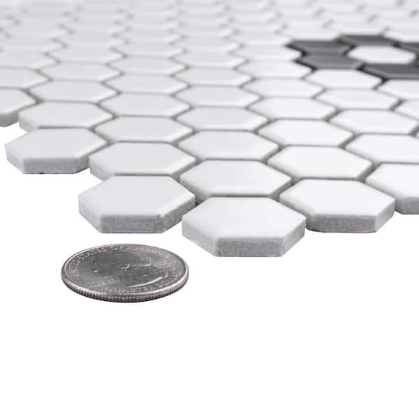 Metro 1 in. Hex Matte White with Single Flower 6 in. x 6 in. Porcelain Mosaic Take Home Tile Sample